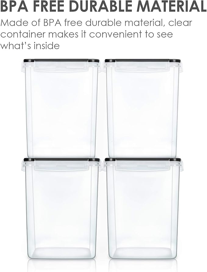 • Perfect for Storing Dry Food ---- The size of each container is 7.5 x 7.5 x 9.1 inch ( 5.2L / 175 oz) , with the large capacity, these kitchen storage containers are perfect for many kinds of dry food and baking supplies, such as flour, sugar, rice, grain, chips, cereals, nuts, beans, snacks, pasta, coffee and tea. Plus wide enough openings to reach in with a measuring cup.